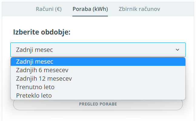Sedaj imate na voljo nova prednastavljena časovna obdobja za hitro pregledovanje vaše porabe in računov. Izberete lahko med naslednjimi obdobji: