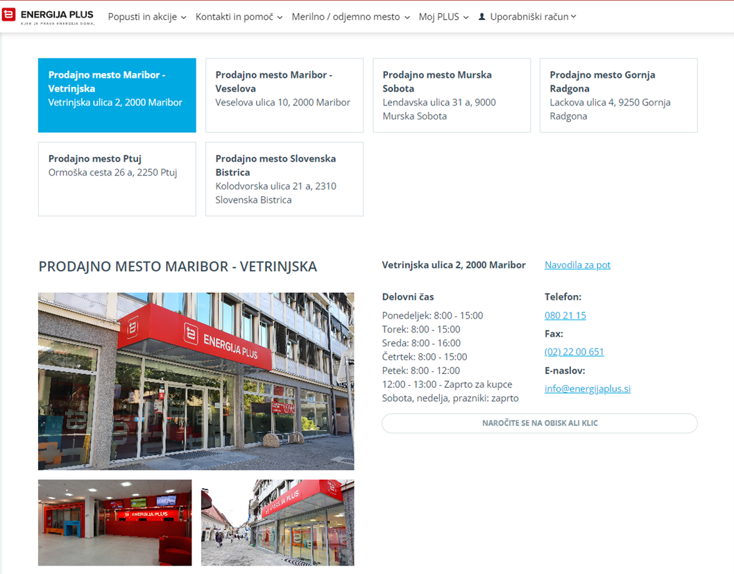 3. Izberite Prodajno mesto: Poiščite in izberite prodajno mesto, ki ga želite obiskati. Nato kliknite na gumb "Naročite se na obisk ali klic."